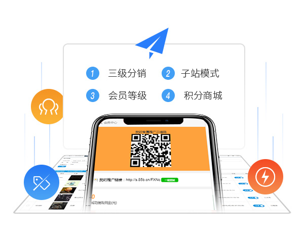 利用分销,子站,会员等级,批发价格等多种营销方式,帮您实现商城高活跃、高客单、高复购,向乏味的营销方式说再见